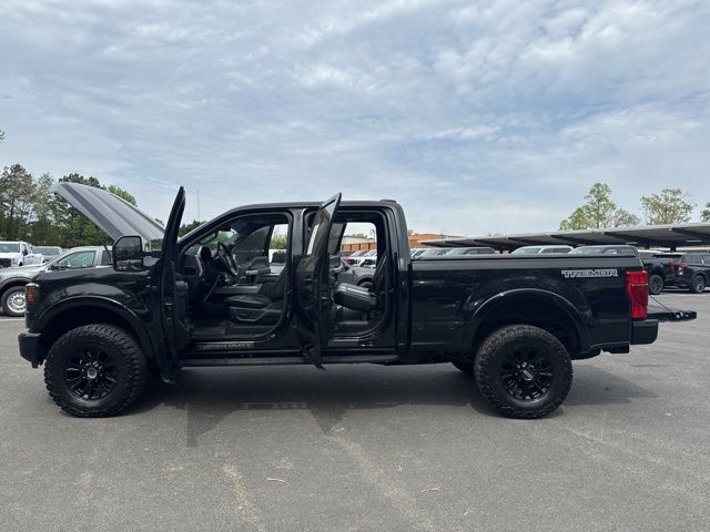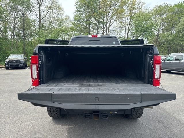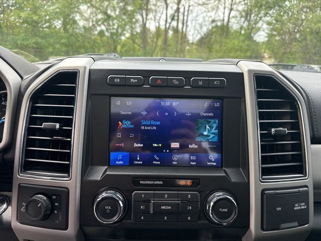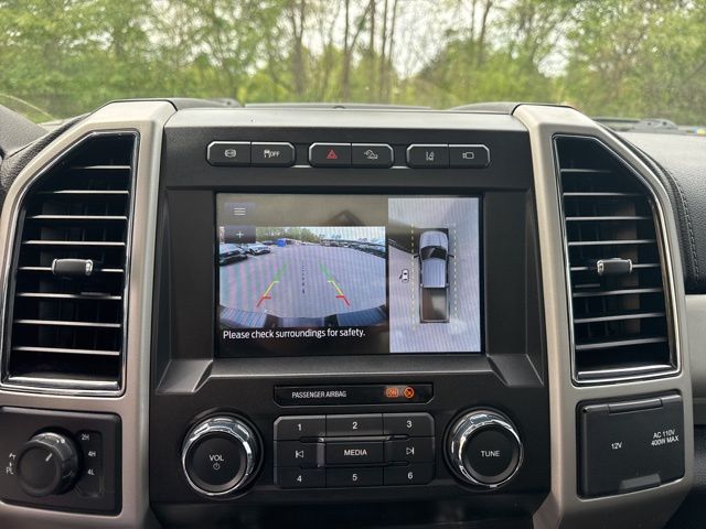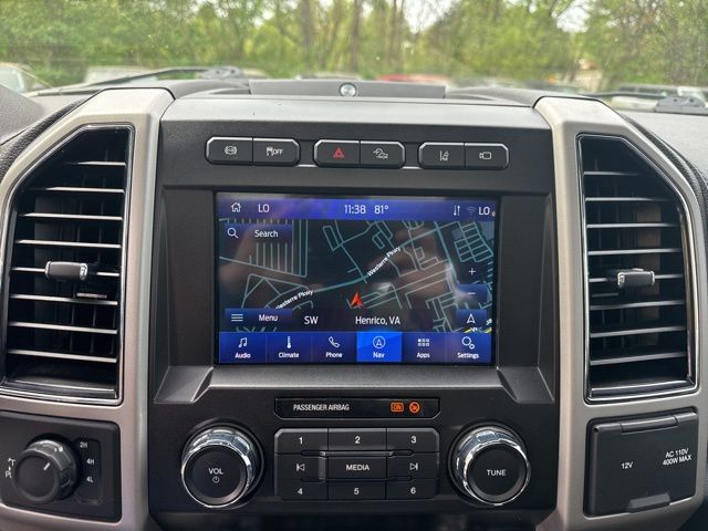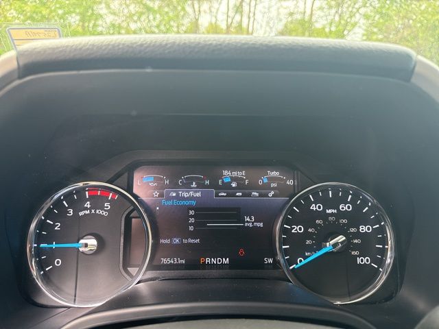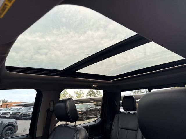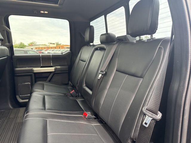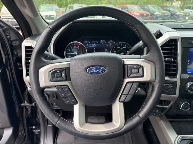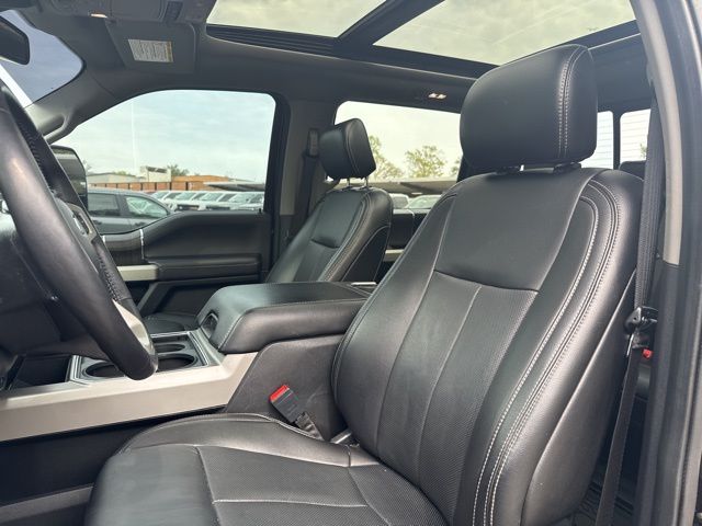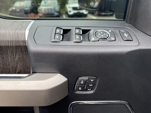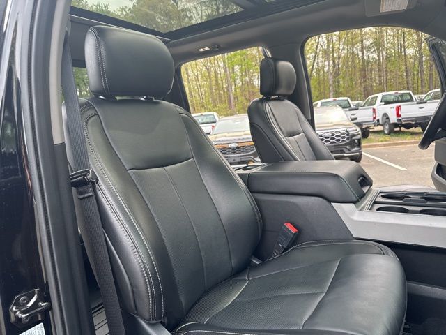 GVWR: 10,000 lb Payload Package, High Capacity Trailer Tow Package, Lariat Black Appearance Package (6" Ebony Black Angular Running Boards, Black Out Surrounds LED Only Headlamps, Body-Color Front & Rear Bumpers, Ebony Black Painted Front Grille Bars, Ebony Black Painted Mirror Caps, Rear Wheel Well Liners (Pre-Installed), Tough Bed Spray-In Bedliner, and Wheels: 20" High-Gloss Black Premium Painted Alum), Lariat Ultimate Package (Ambient Lighting - Fixed Color, Easy Entry®/Exit Memory Driver's Seat Feature, Intelligent Access w/Push-Button Start, LED Box Lighting, Memory Power-Adjustable Pedals, Power Heated/Ventilated Driver Seat w/Memory, Power Heated/Ventilated Passenger Seat, Power Telescoping/Tilt Steering Wheel/Column, PowerScope Trailer Tow Mirrors w/Memory, Remote Start System, Remote Tailgate Release, Tailgate Step & Handle, and Voice-Activated Navigation), Order Code 608A, Pro Trailer Backup Assist - High Capacity (Lane-Keeping Alert and Ultimate Trailer Tow Camera System), 10 Speakers, 110V/400W Outlet, 397 Amp Alternator, 4-Wheel Disc Brakes, ABS brakes, Adjustable pedals, Air Conditioning, All-Weather Floor Mats, Alloy wheels, AM/FM radio: SiriusXM, Auto High-beam Headlights, Auto-dimming Rear-View mirror, Automatic temperature control, Brake assist, Bumpers: chrome, Compass, Delay-off headlights, Driver door bin, Driver vanity mirror, Dual front impact airbags, Dual front side impact airbags, Electronic Stability Control, Emergency communication system: SYNC 3 911 Assist, Engine Block Heater, Exterior Parking Camera Rear, Flow-Through Console, Front anti-roll bar, Front Bucket Seats, Front Center Armrest, Front dual zone A/C, Front fog lights, Front Leather Seating Surfaces 40/Console/40, Front reading lights, Fully automatic headlights, Heated door mirrors, Heated Steering Wheel, Illuminated entry, Leather steering wheel, Low tire pressure warning, Outside temperature display, Overhead airbag, Overhead console, Panic alarm, Passenger door bin, Passenger vanity mirror, Power door mirrors, Power driver seat, Power passenger seat, Power steering, Power windows, PowerScope Trailer Tow Mirrors w/Heat, Radio data system, Radio: B&O System by Bang & Olufsen, Rain-Sensing Windshield Wipers, Rapid-Heat Supplemental Cab Heater, Rear Parking Sensors, Rear reading lights, Rear seat center armrest, Rear step bumper, Rear window defroster, Remote keyless entry, Security system, SiriusXM Radio, Speed control, Split folding rear seat, Steering wheel mounted audio controls, SYNC 3 Communications & Entertainment System, Tachometer, Telescoping steering wheel, Tilt steering wheel, Traction control, Trip computer, Turn signal indicator mirrors, Twin Panel Power Moonroof, Universal Garage Door Opener (UGDO), Upfitter Switches (6), Variably intermittent wipers, and Wheels: 18" Bright Machined Cast Aluminum.