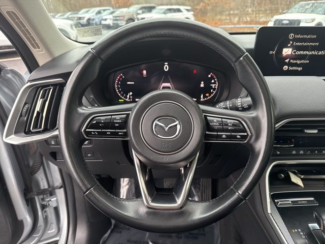 12 Speakers, 2nd-Row Captain's Chairs, 3rd row seats: bench, 4-Wheel Disc Brakes, ABS brakes, Air Conditioning, Alloy wheels, AM/FM radio: SiriusXM, Auto High-beam Headlights, Auto-dimming Rear-View mirror, Automatic temperature control, Brake assist, Bumpers: body-color, Compass, Delay-off headlights, Driver door bin, Driver vanity mirror, Dual front impact airbags, Dual front side impact airbags, E911 Automatic Emergency Notification, Electronic Stability Control, Emergency communication system: MAZDA CONNECT, Exterior Parking Camera Rear, Four wheel independent suspension, Front anti-roll bar, Front Bucket Seats, Front Center Armrest w/Storage, Front dual zone A/C, Front reading lights, Fully automatic headlights, Garage door transmitter: HomeLink, Heads-Up Display, Heated door mirrors, Heated Front Bucket Seats, Heated front seats, Illuminated entry, Infotainment System Voice Command, Knee airbag, Leather Seat Trim, Leather Shift Knob, Leather steering wheel, Low tire pressure warning, Mazda Connected Services, Mazda Navigation System, Memory seat, Navigation system: MAZDA CONNECT, Occupant sensing airbag, Outside temperature display, Overhead airbag, Overhead console, Pandora Internet Radio Integration, Panic alarm, Passenger door bin, Passenger vanity mirror, Power door mirrors, Power driver seat, Power Liftgate, Power moonroof, Power passenger seat, Power steering, Power windows, Radio Broadcast Data System Program Information, Radio data system, Radio: AM/FM w/HD/Bose 12-Speaker Sound System, Rain sensing wipers, Rear air conditioning, Rear anti-roll bar, Rear reading lights, Rear seat center armrest, Rear window defroster, Rear window wiper, Remote keyless entry, SMS Text Msg Audio Delivery & Reply, Speed control, Speed-sensing steering, Split folding rear seat, Spoiler, Steering wheel mounted audio controls, Tachometer, Telescoping steering wheel, Tilt steering wheel, Traction control, Trip computer, Turn signal indicator mirrors, Variably intermittent wipers, and Wheels: 21" x 9.5J Aluminum Alloy.