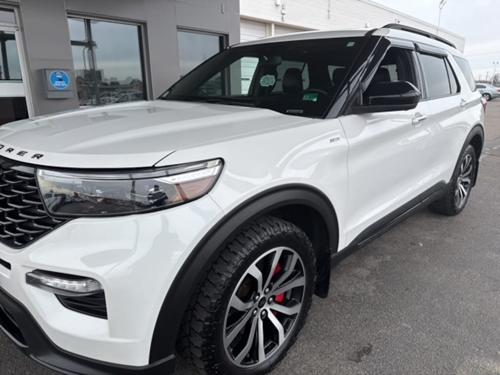 This 2022 Ford Explorer ST-Line 4WD delivers bold styling, modern technology, and confident performance in a versatile midsize SUV. Finished in eye-catching Star White Metallic Tri-Coat with a sleek Ebony interior, this Explorer ST-Line stands out with its sporty design and upscale presence.