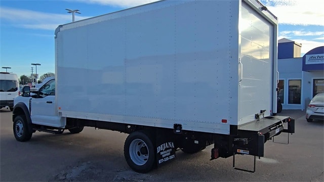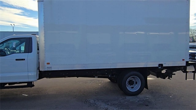 2024 Ford F-600SD RWD Oxford White** Features a 16ft Box Body with Tuck-away Lift Gate**F-600 is power with the 7.3L V8** 10 Speed Automatic Transmission**22,000 GVWR**40 Gallon Fuel Tank**The Box Body is a DeJana Durabox** 16'L x 96"W x 91.25H**The Lift Gate is a Thieman Stow-Away Standard Tailgate M2 5ET with a 2,500lb capacity**E-Track inside the Box-2 rows at 24" and 48" from the floor**Back Up Alarm and Rear View Camera**