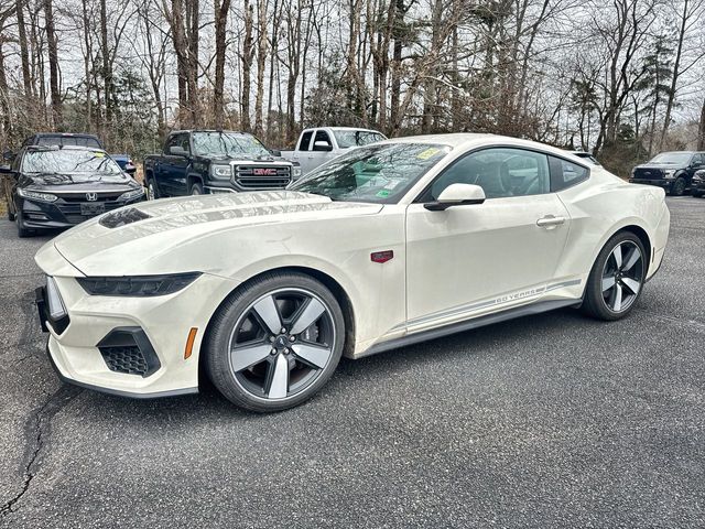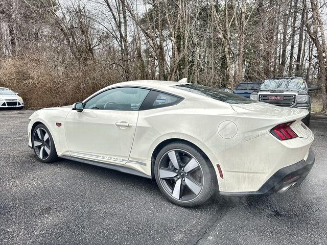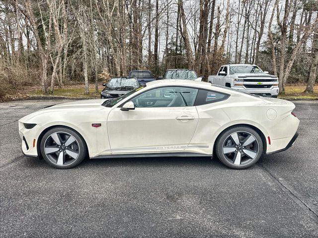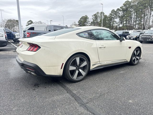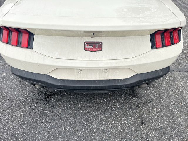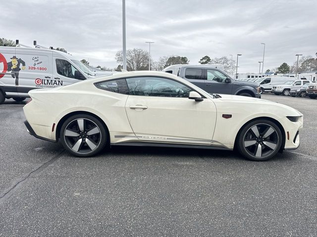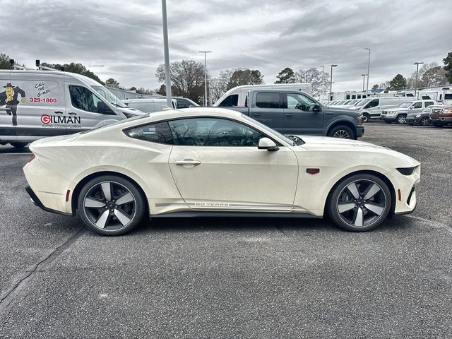 Wimbledon White 2025 Ford Mustang GT Premium RWD 10-Speed Automatic 5.0L V8 Ti-VCT 3.55 Limited Slip Rear Axle, 4-Wheel Disc Brakes, 60th Anniversary Package, ABS brakes, Active Valve Performance Exhaust, Air Conditioning, Alloy wheels, AM/FM Stereo, Anniversary Special Edition Badge, Auto High-beam Headlights, Automatic temperature control, B&O Sound System by Bang & Olufsen w/12 Speakers, Brake assist, Brembo Brake System, Brembo Brake System w/Performance Linings, Bumpers: body-color, Compass, Delay-off headlights, Driver door bin, Driver vanity mirror, Dual front impact airbags, Dual front side impact airbags, Electronic Stability Control, Emergency communication system: 911 Assist, Equipment Group 401A High Package, Exterior Parking Camera Rear, Four wheel independent suspension, Front anti-roll bar, Front Bucket Seats, Front Center Armrest, Front dual zone A/C, Front reading lights, Fully automatic headlights, Illuminated Door-Sill Scuff Plates, Illuminated entry, Internet access capable: FordPass Connect, Knee airbag, Leather Shift Knob, Leather steering wheel, Leather-Trimmed Bucket Seats w/Color Accents, Low tire pressure warning, Occupant sensing airbag, Outside temperature display, Overhead airbag, Overhead console, Painted High Gloss Black Honeycomb Grille, Panic alarm, Passenger door bin, Passenger vanity mirror, Power door mirrors, Power steering, Power windows, Radio data system, Rain sensing wipers, Rear anti-roll bar, Rear Parking Sensors, Rear window defroster, Remote keyless entry, Speed control, Speed-sensing steering, Speed-Sensitive Wipers, Split folding rear seat, Spoiler, Sport steering wheel, Steering wheel mounted audio controls, SYNC 4, Tachometer, Telescoping steering wheel, Tilt steering wheel, Traction control, Trip computer, Variably intermittent wipers, Voltmeter.